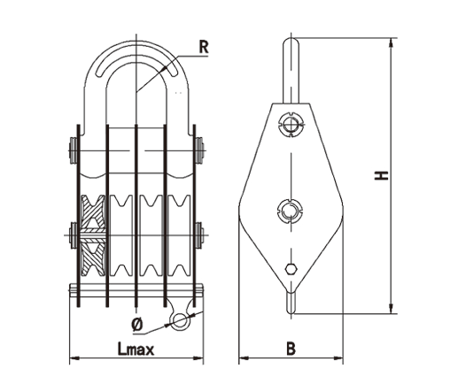 1、吊钩特点:优质合金钢模锻而成,3倍安全系数。 2、滑轮:铸铁滑轮、铸钢滑轮、热轧滑轮。 3、滑轮套芯:复合耐磨铜套、纯铜套、滚珠轴承、滚针轴承。 4、其他吨位可以定做。